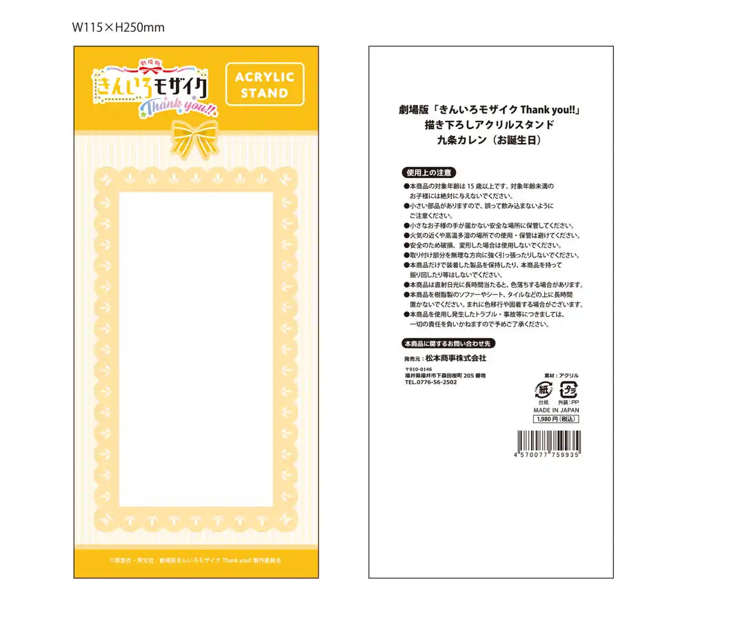 | 商品名稱 | きんいろモザイクThank you!! 描き下ろしアクリルスタンド 九条カレン(お誕生日)(亞加力立牌) |